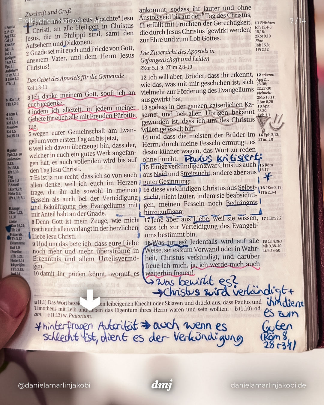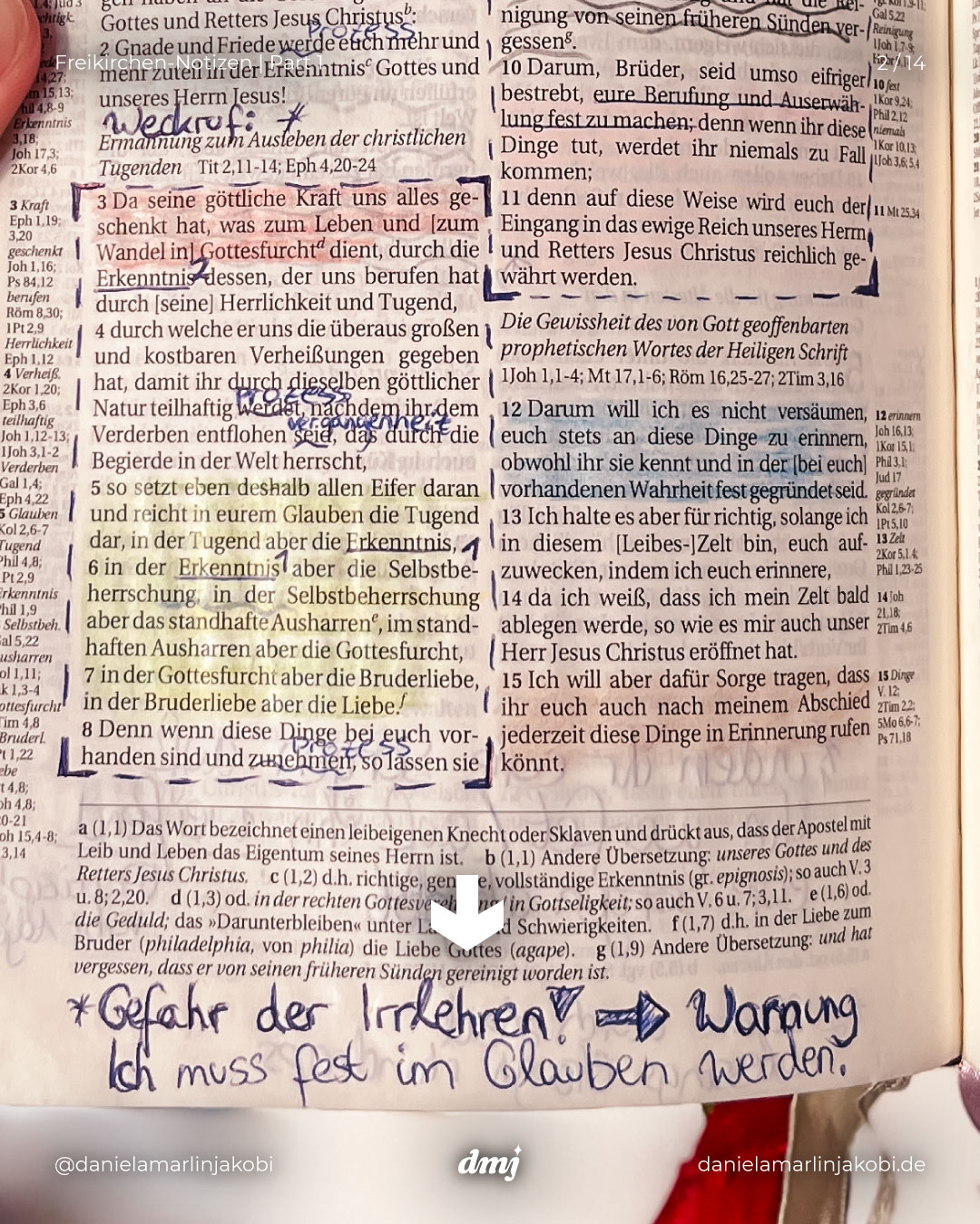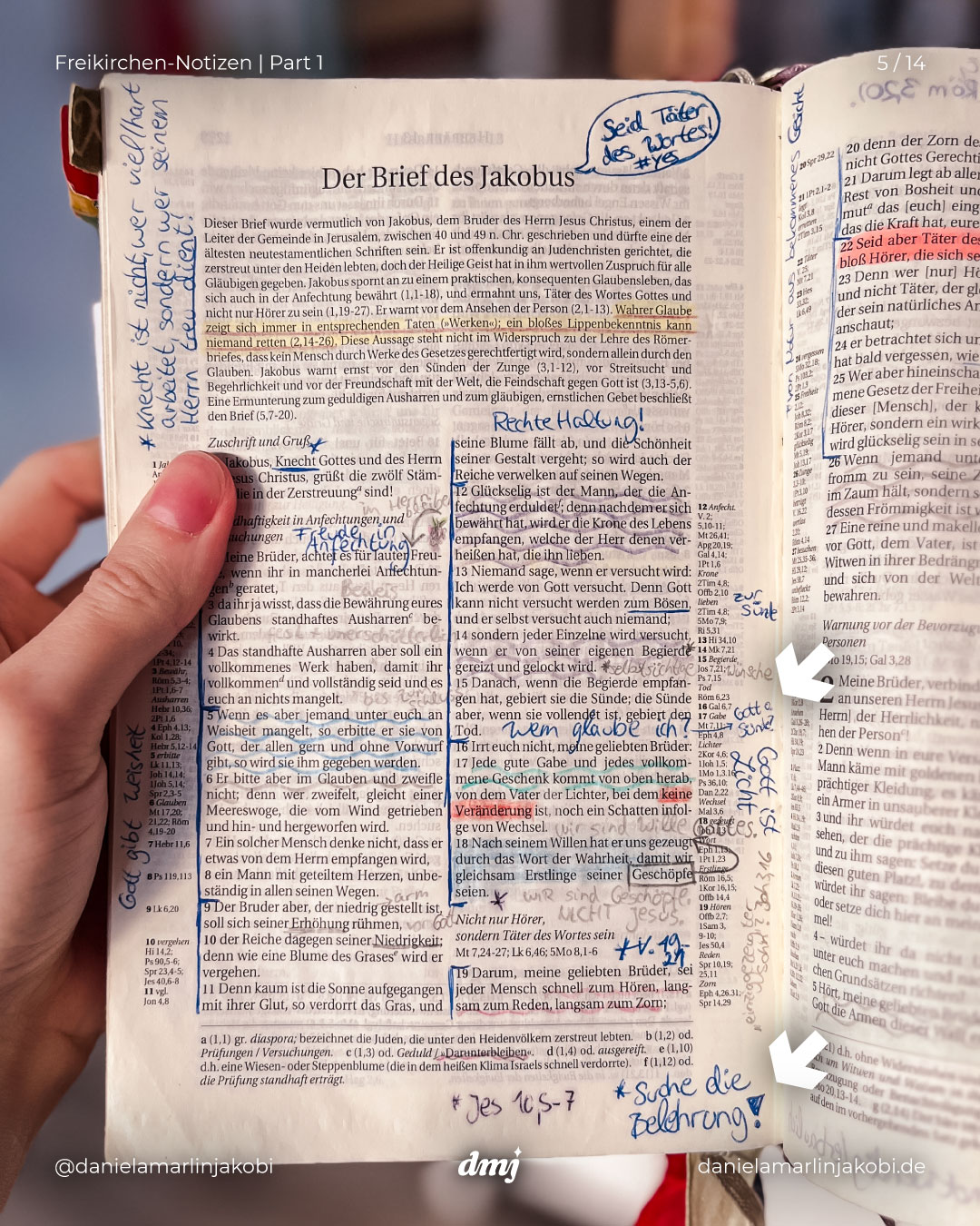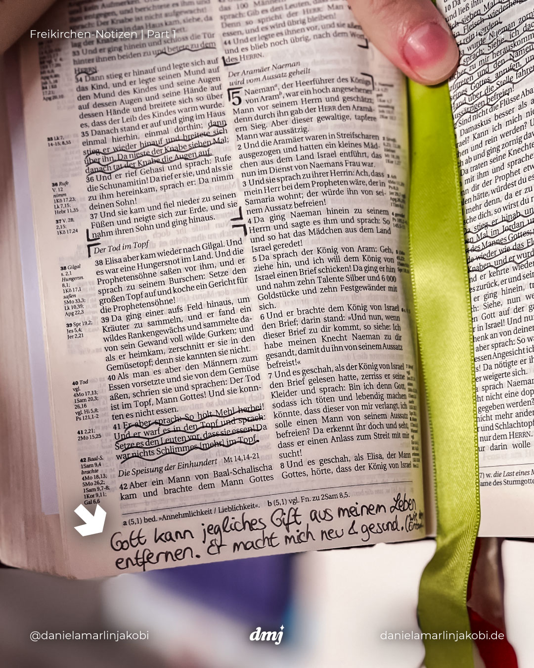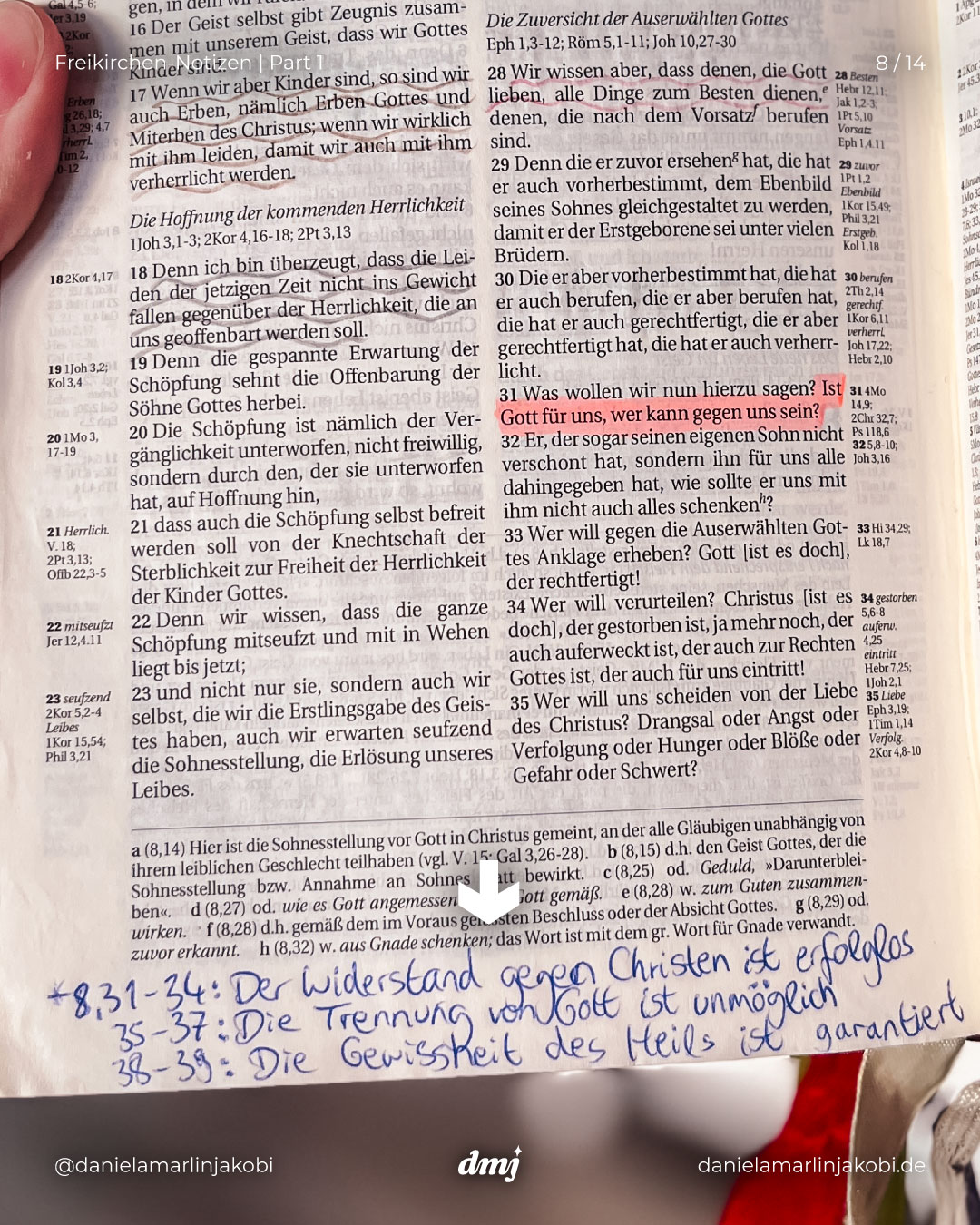 Ich präsentiere: Meine Notizen (und lose Zettel) aus meiner alten „Schlachter2000“-Bibel, die ich während meiner 11-jährigen Freikirchen-Zeit am intensivsten genutzt habe.
